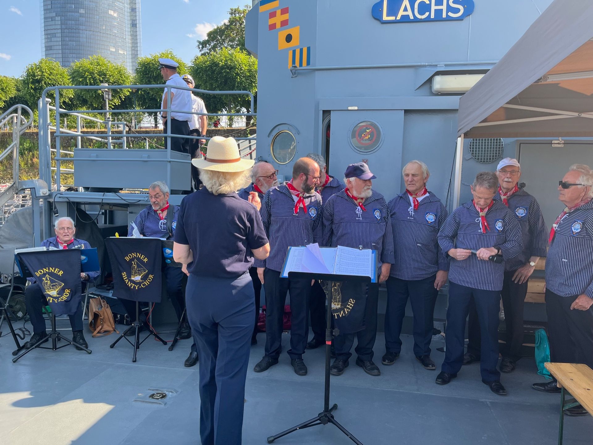 Das Mehrzwecklandungsboot LACHS hat auf seiner Rheinreise auch einen Stop in Bonn am Stresemannufer eingelegt. Die „Eisbären“ bereiteten am Sonntag, den 11.06.23, der Mannschaft der LACHS einen besonderen Empfang. Nach dem festmachen der LACHS, ging es in den Heimathafen zum Einlaufbier und einer lecker Grill-Bratwurst.